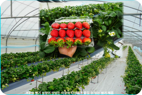 겨울철 딸기, 특히 ‘설향’ 품종이 맛있고 다양한 제품으로 즐길 수 있는 이유는 여러 가지 요소가 결합되어 있기 때문입니다. 이에 관하여 알아보면 아래와 같습니다.