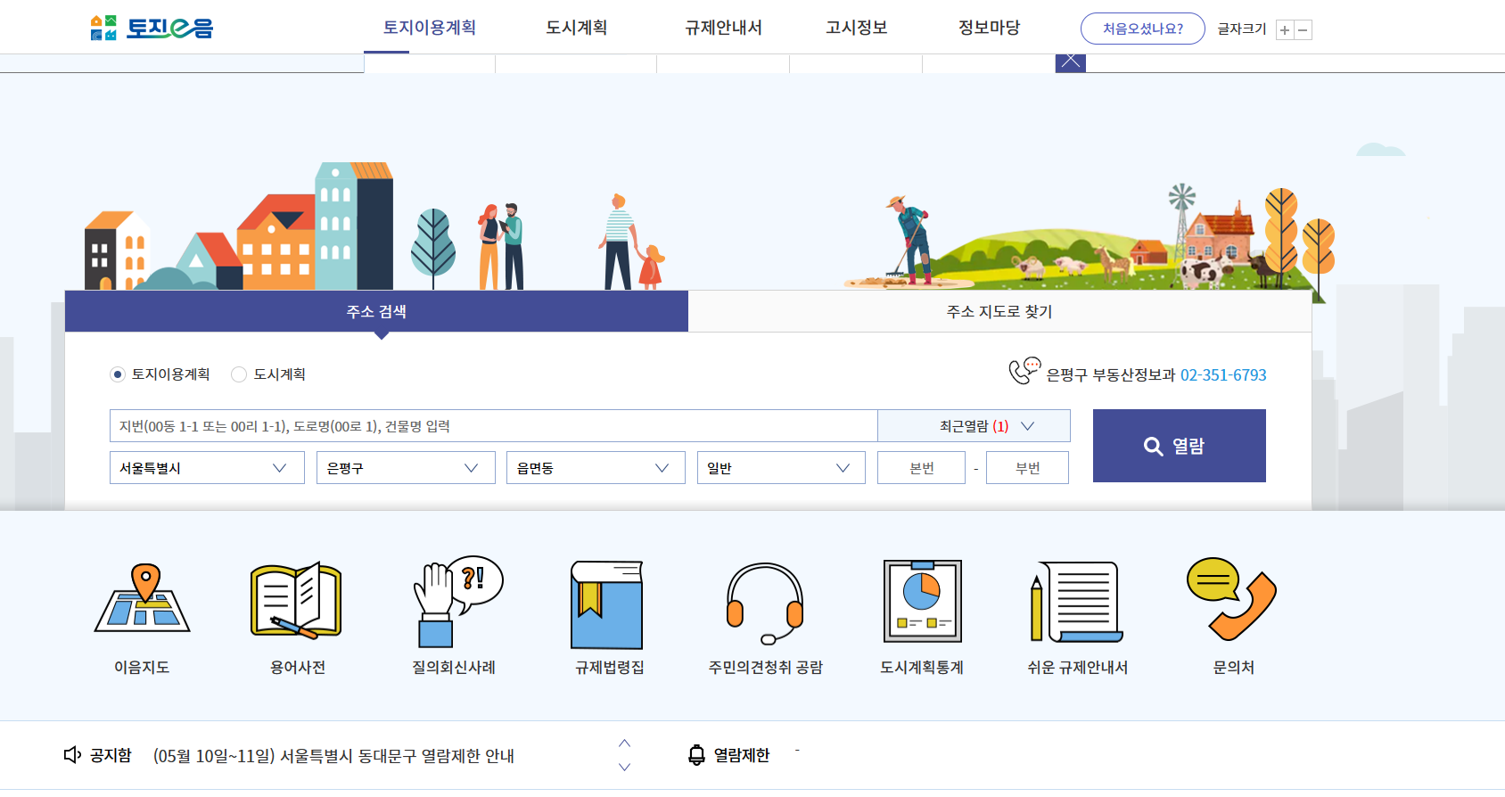 토지이용규제정보를 쉽게 확인할 수 있는 사이트로 초보 경매를 준비하는 사람이 꼭 한번은 경매 목적물의 지역의 토지이용계획, 도시계획 등 확인해야 하므로 낙찰 이후 어떤 건물을 신축하거나 증축 등 하는 경우 각종 규제내용을 확인하지 않아서 낭패를 볼 수 있어서 입찰참가 전에 반드시 확인이 필요하다고 본다.