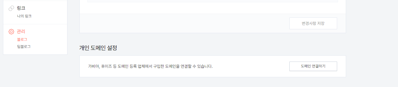 그리고 아래 그림에서 개인도메인 설정 - 도메인연결하기 클릭하여 주세요.